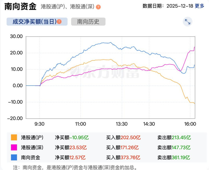 资金方面,截至收盘,今日南向资金净买入港股超12亿港元。